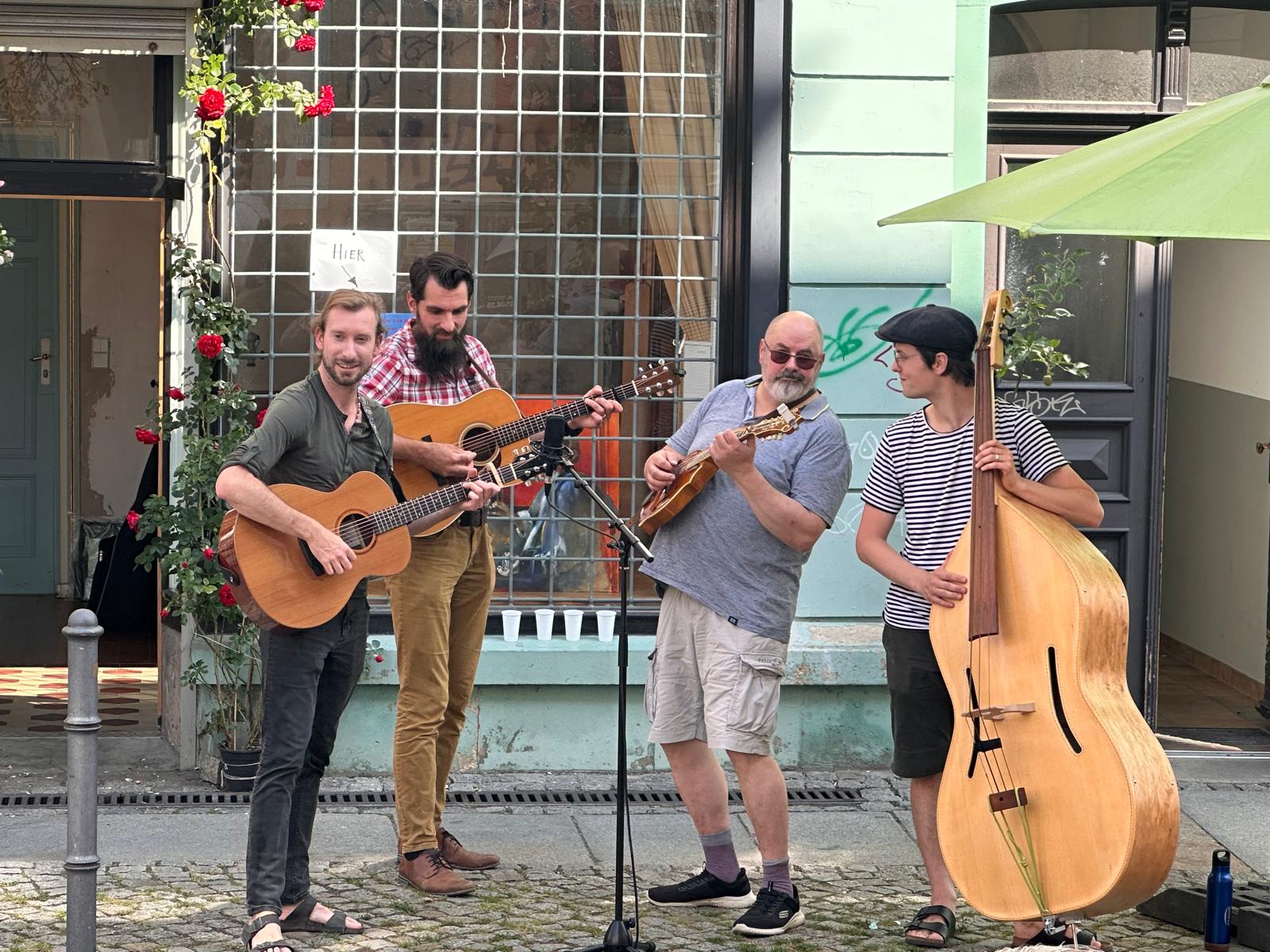 Dark Holler (DE/NL/USA) fanden sich bei einer Bluegrass-Session am Stadtrand von Dresden zusammen. Aus der spontanen Begegnung entstand der Wunsch, diese Musik gemeinsam auf die Bühne zu bringen. Gespielt werden Klassiker von Bill Monroe, zeitgenössische Melodien, fröhliche Grooves und dreistimmige Harmonien – ganz traditionell, mit nur einem Mikrofon.