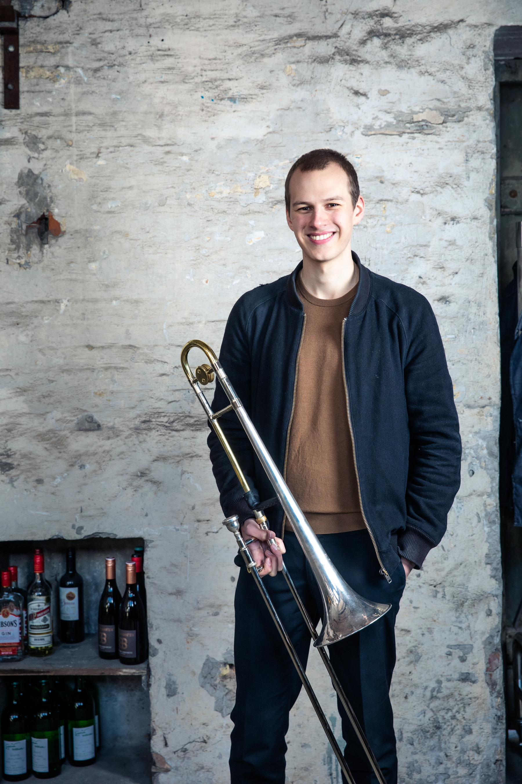 Bandleader Tobias Stavngaard is a trombonist, composer, and arranger based in Copenhagen. He holds a master’s degree in composition from the National Danish Academy of Music (2024) and has received multiple awards for his compositions. In 2024, he won the Big Band Composition Contest for Young Baltic and Nordic Composers with his piece To Be, and in 2023 he received 2nd prize in the Nordic Composer Contest for his big band piece Dead as a Dodo. Alongside his work as a bandleader and composer, Tobias also plays trombone in the renowned Aarhus Jazz Orchestra.