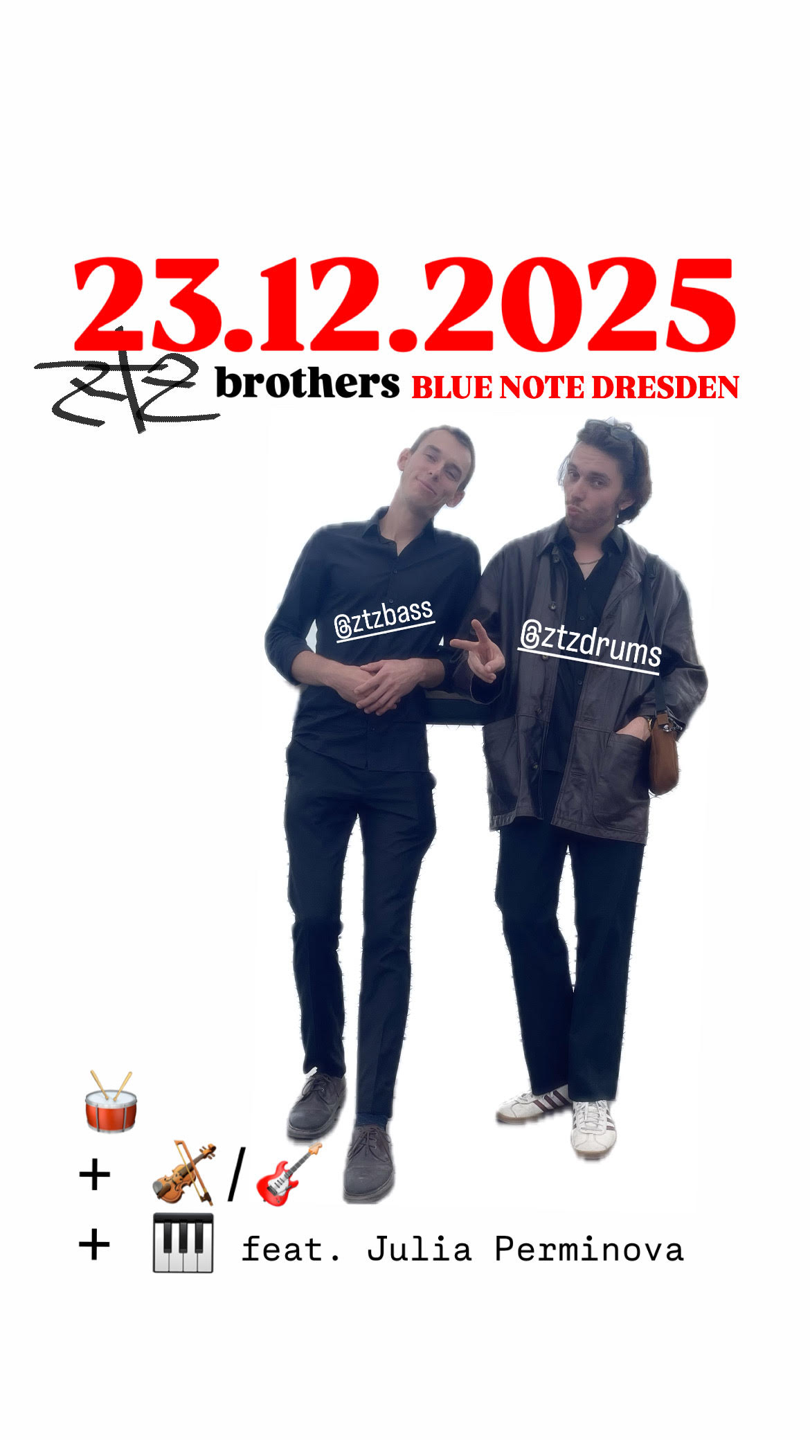 Die in Dresden gebürtigen Brüder Josef (Paris) und Jan Zeimetz (Basel) gehören zur internationalen Jazzszene Europas und haben bereits in verschiedenen Besetzungen auf der ganzen Welt gespielt. Nun kommen die Brüder mit einem neuen Trio in ihren Heimatclub nach Dresden und präsentieren ein brandneues Programm aus akustischem Jazz und elektronischer Musik. Zu ihren Inspirationen zählen John Coltrane, Miles Davis, Patrice Rushen oder Weather Report.